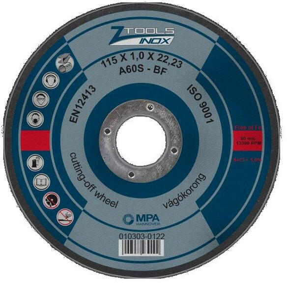 Z-tools Inox vágókorong 115x1, 0x22, 2 A60S-BF (010103-0122) - szerszamplusz